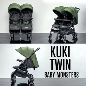 Baby Monsters Kuki Twin su kišobran kolica koja se mogu koristiti od rođenja do 15 kg težine po djetetu, prolaze kroz sva vrata i liftove, također imaju produljene kroviće, mogućnost kombiniranja različitih boja krovića i podloga u sjedištu, težina kolica sa sjedištem i konstrukcijom je 9,8 kg te dolaze s ruksakom za lakši transport.