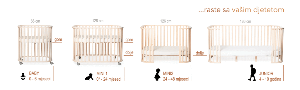 - Cutie set 4u1 je kolijevka i tri različita krevetića u jednom