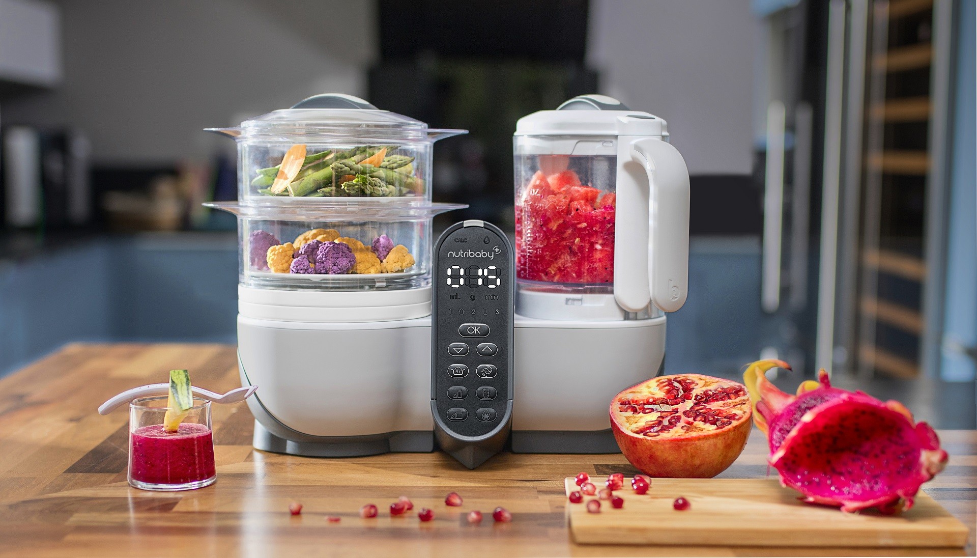 Nutribaby+ je mikser, aparat za kuhanje hrane na pari, sterilizator koji osim što služi za pripremu bebine hrane zbog svog velikog kapaciteta kasnije se koristi kao kućni uređaj za cijelu obitelj.