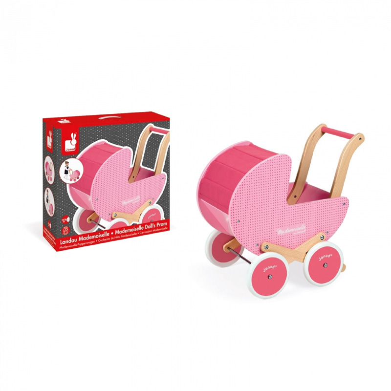 Ova preslatka drvena kolica bit će čvrst oslonac kod prvih koraka vaših mališana, ali i mekano mjesto za drijemanje svih plišanaca i lutki koje jedva čekaju da ih netko odvede u šetnju