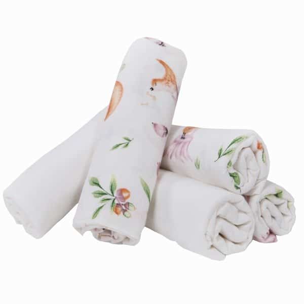 - Set sadrži 5 komada pelena od flanela– dimenzija 70 cm x 80 cm.