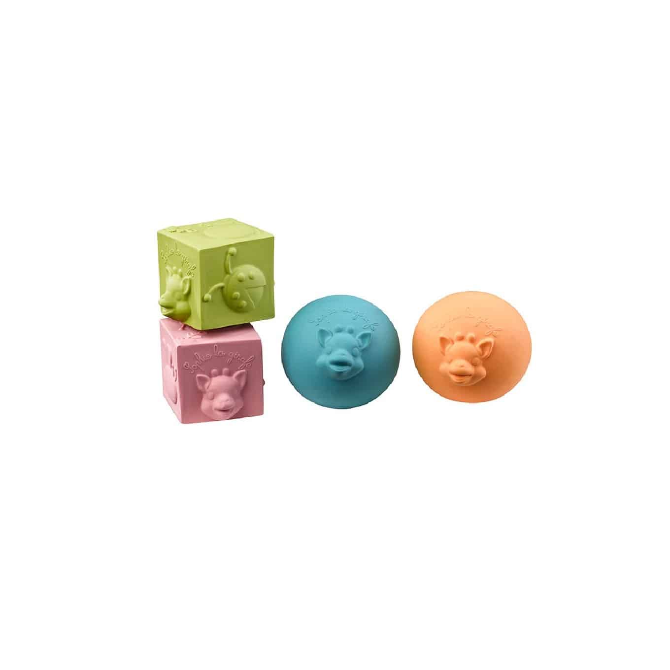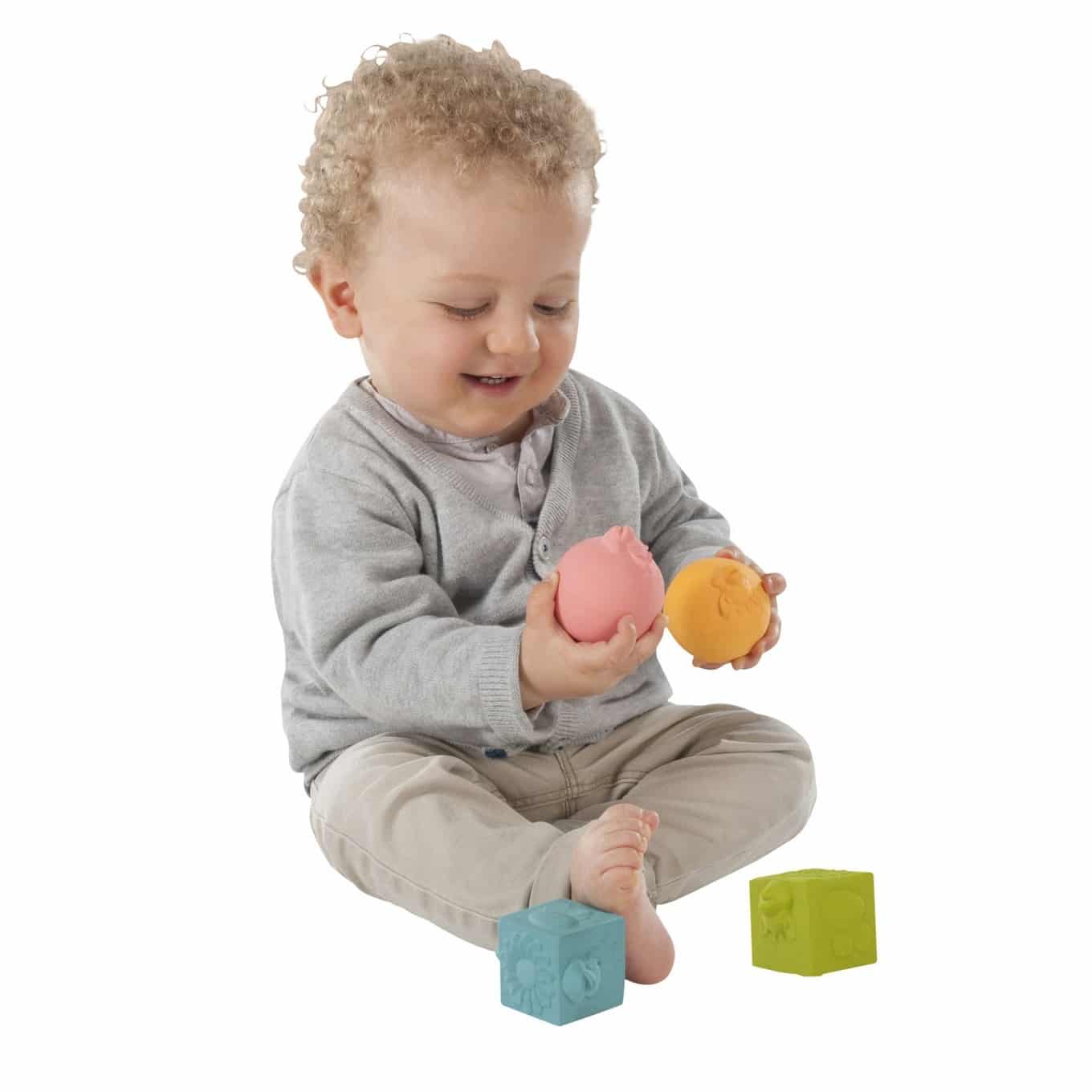 Budući da su lopte i kocke rađene od 100% prirodne gume, beba može grickati ove kocke bez ikakve opasnosti.